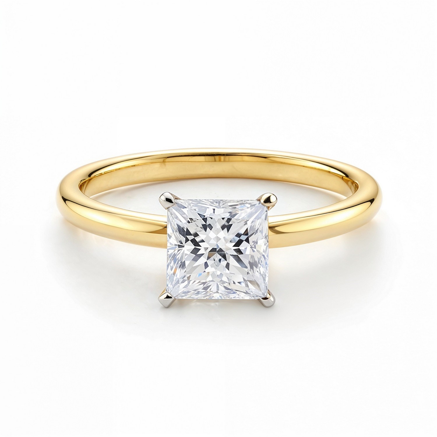 Mark your special moments with this stunning 1 carat princess-cut lab-grown diamond solitaire ring where classic beauty meets contemporary design. IGI certified for quality and authenticity, the diamond features G color and VS1 clarity, offering exceptional sparkle and brilliance. Set in a traditional four-prong 14K white gold head and paired with a polished 14K yellow gold band, the elegant two-tone design adds a striking contrast that suits any style. Perfect for engagements, anniversaries, or life’s unforgettable milestones, this ring is more than a beautiful accessory it’s a lasting symbol of love.