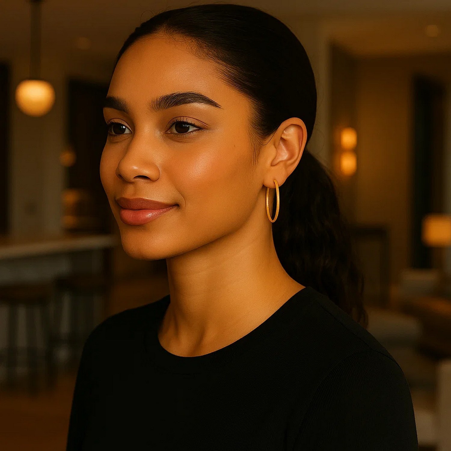 These timeless hoop earrings crafted in 10k yellow gold and measure 25 millimeters in diameter, featuring a snap lock backing.