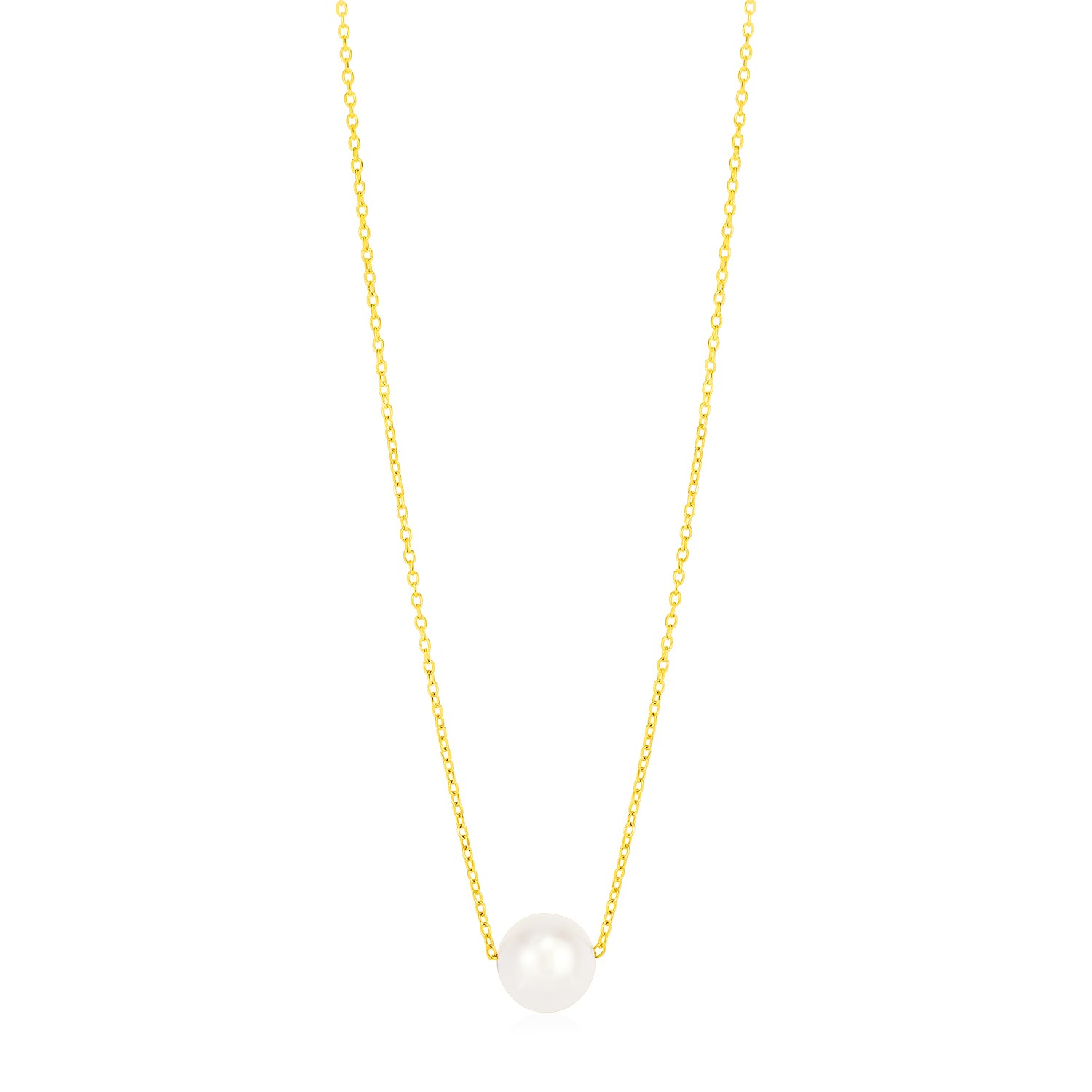 A single 7mm perfect pearl gorgeously adorns fine chain on this exquisite 14k yellow gold necklace. Necklace is 18 inches long.