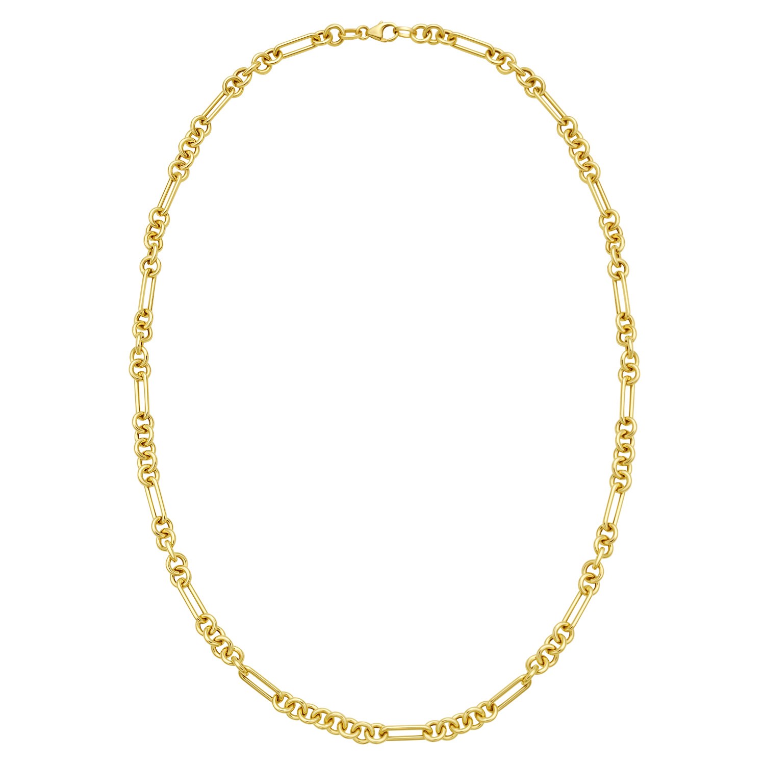 Elevate your style with our 14K Yellow Gold Five-and-One Paperclip Link Chain Necklace. This exquisite piece features a unique design of five polished paperclip links followed by a single elongated link, creating a modern and sophisticated pattern. Crafted from high-quality 14K yellow gold, it offers a luxurious shine that complements any ensemble. Available in 18 inches length secured with a reliable lobster clasp, ensuring comfort and durability for daily wear or special occasions. Enhance your jewelry collection with this distinctive and elegant accessory.