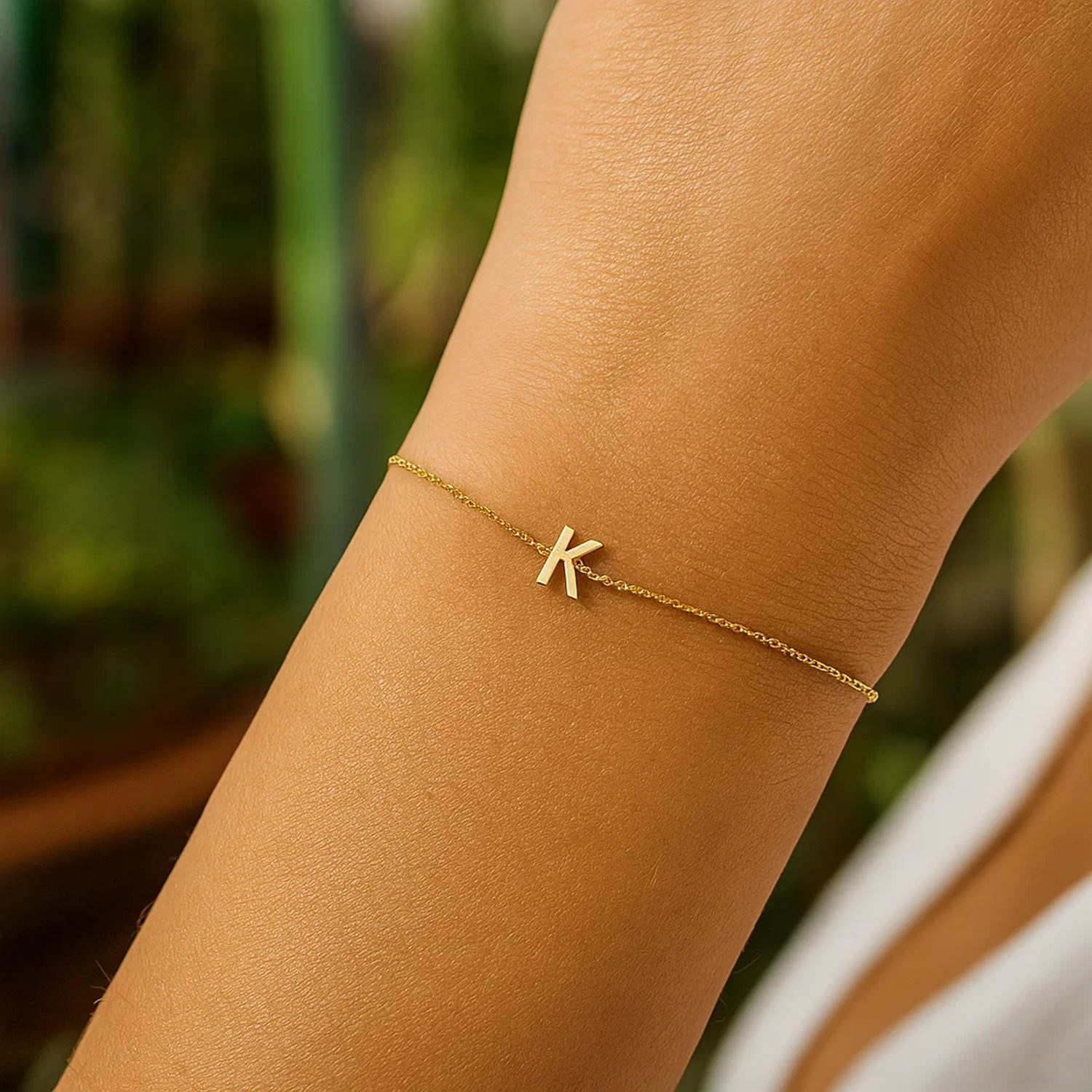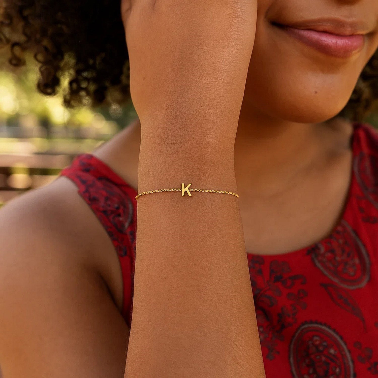 This 14K yellow gold mini initial K bracelet features a petite polished letter charm on a delicate chain, adding a simple and personal touch. Ideal for everyday wear, thoughtful gifting, or layering with your favorite gold bracelets.