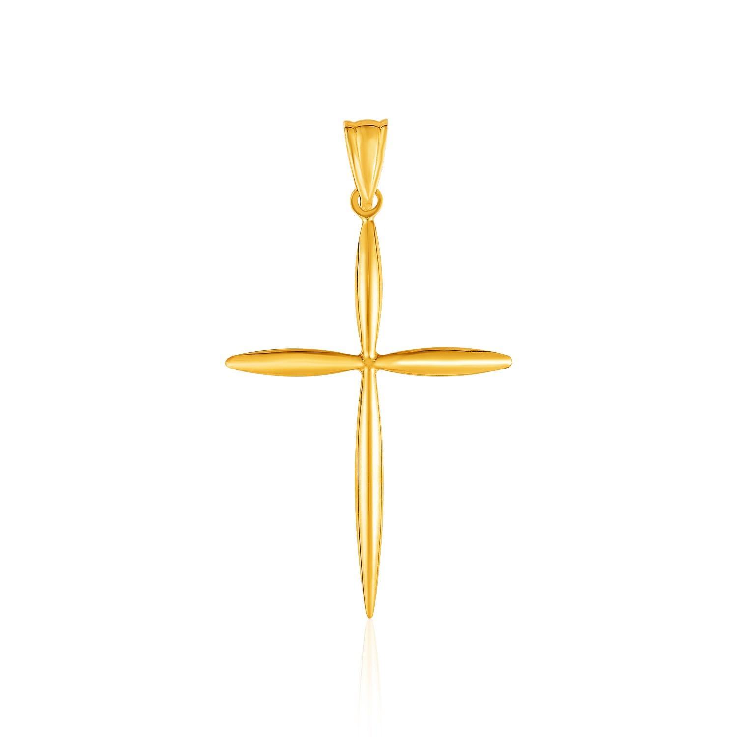 A sophisticated update to a classic cross, this gold pendant features fine pointed, curving lines.