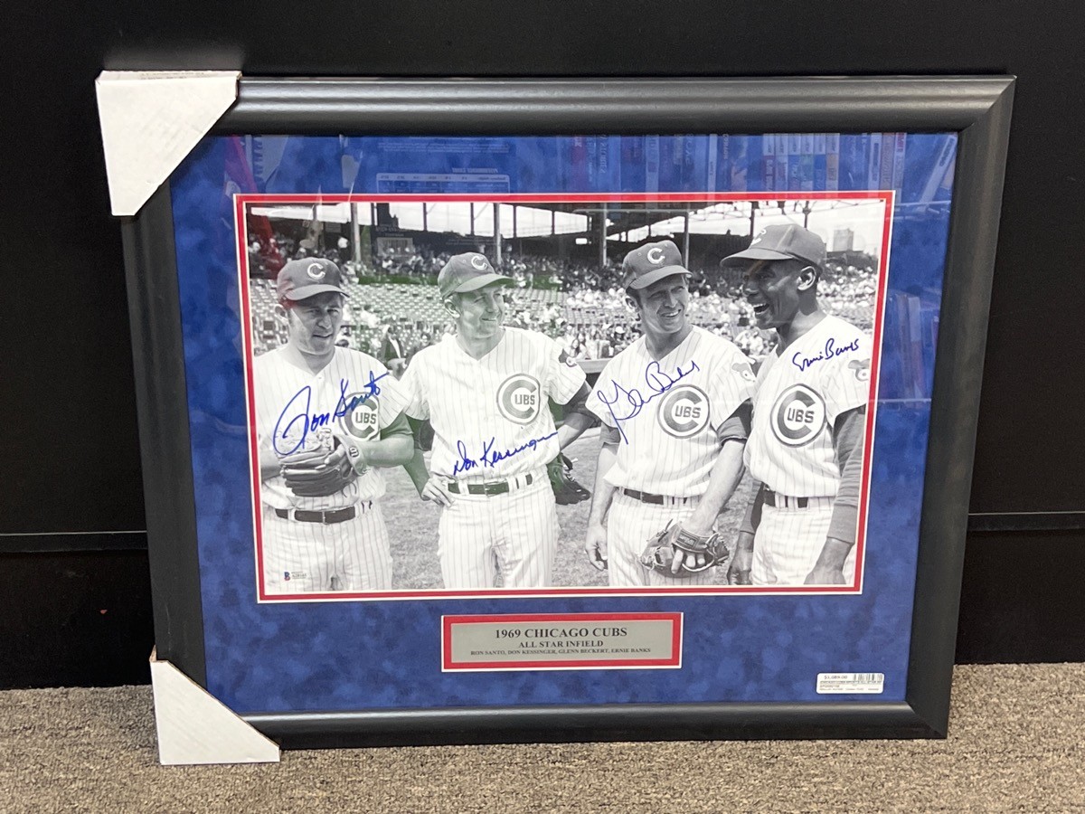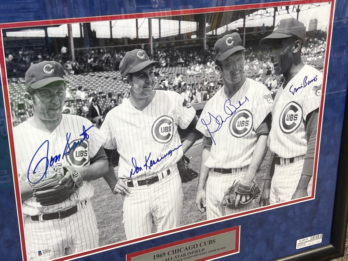- 1969 Cubs Infield signed 16×20 Photo Framed 4 Auto Santo Banks Beckert Kessinger