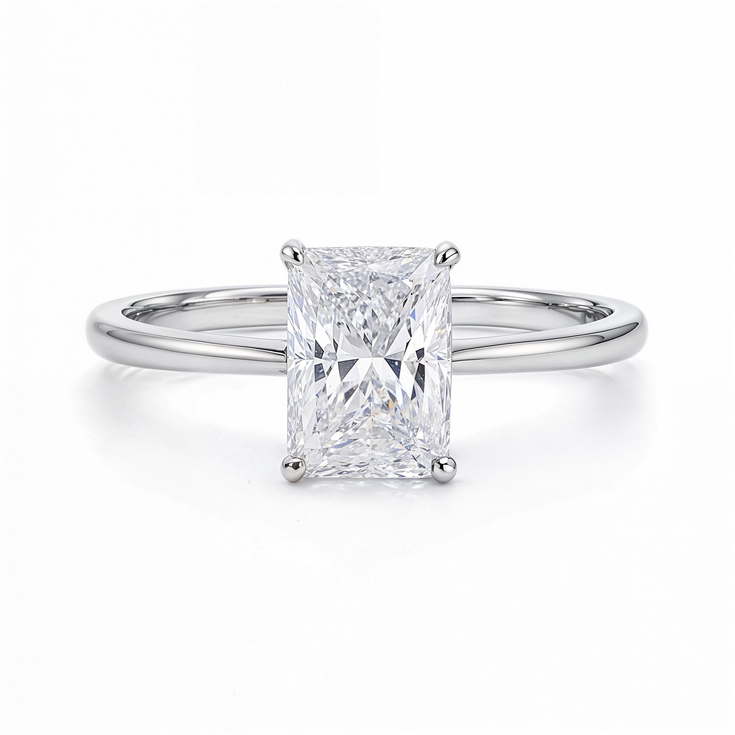 2 Carat Radiant Lab Grown IGI G/VS1 Diamond Solitaire Ring in 10K White Gold