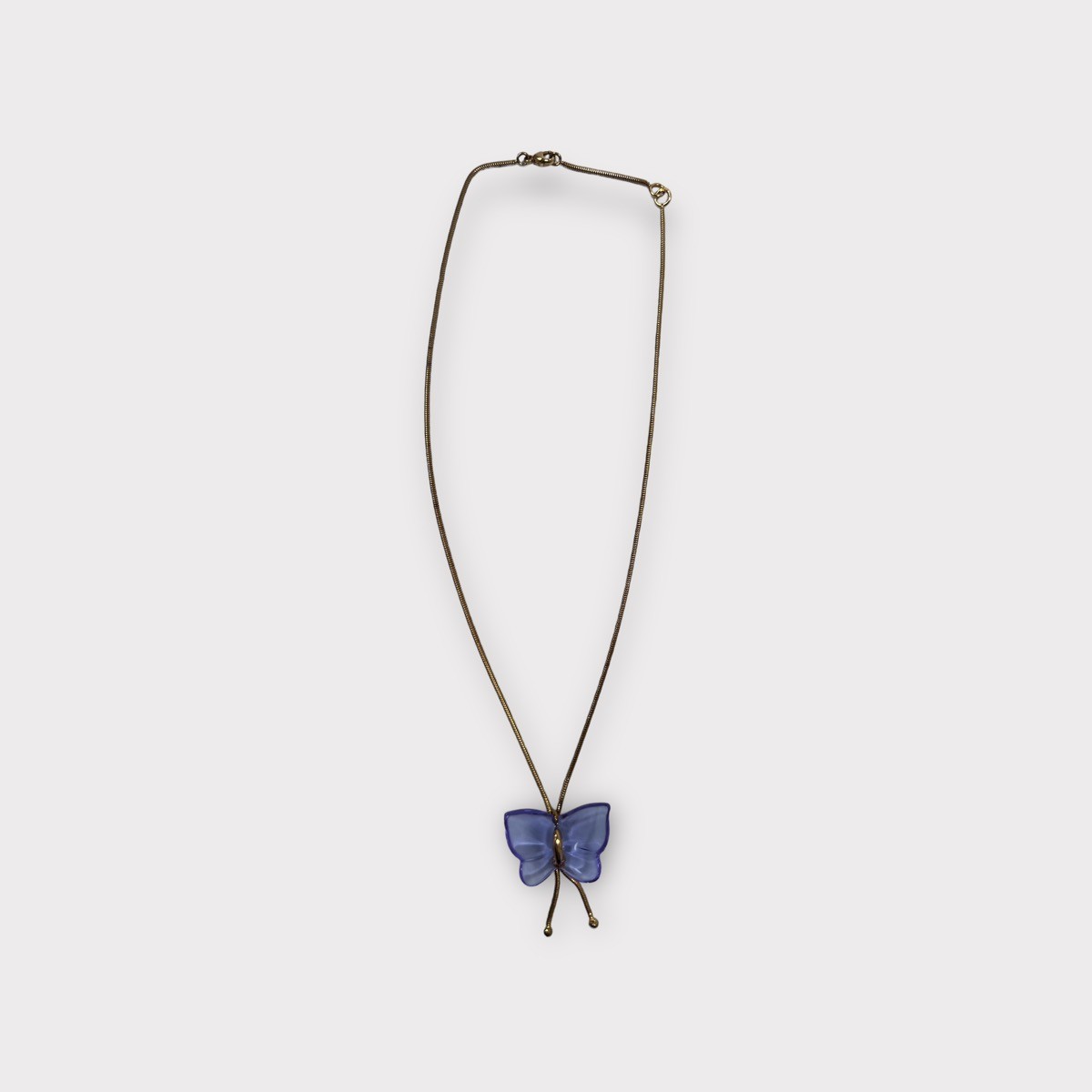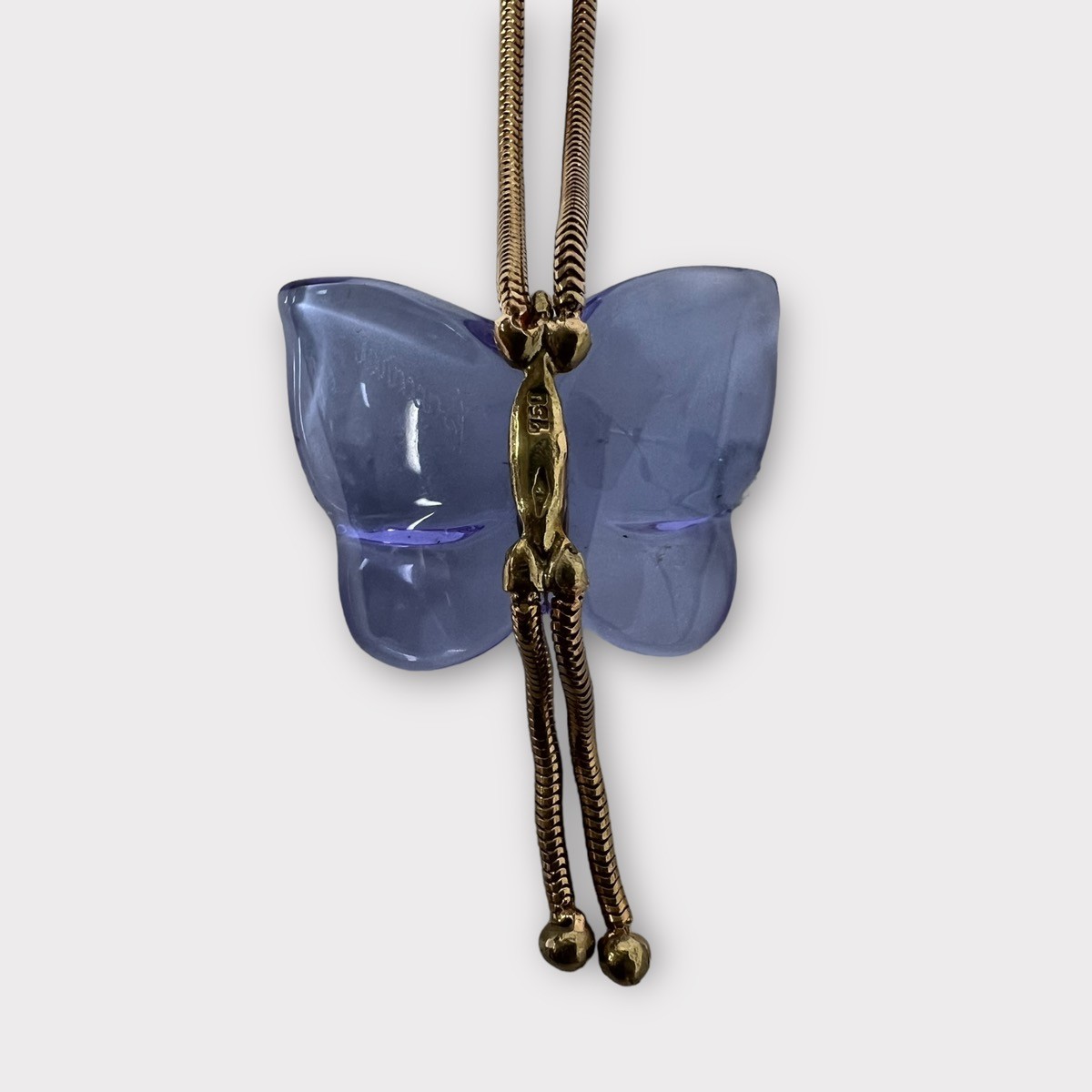 Baccarat Purple Crystal Butterfly Gold Necklace 18K Yellow Gold 6dwt