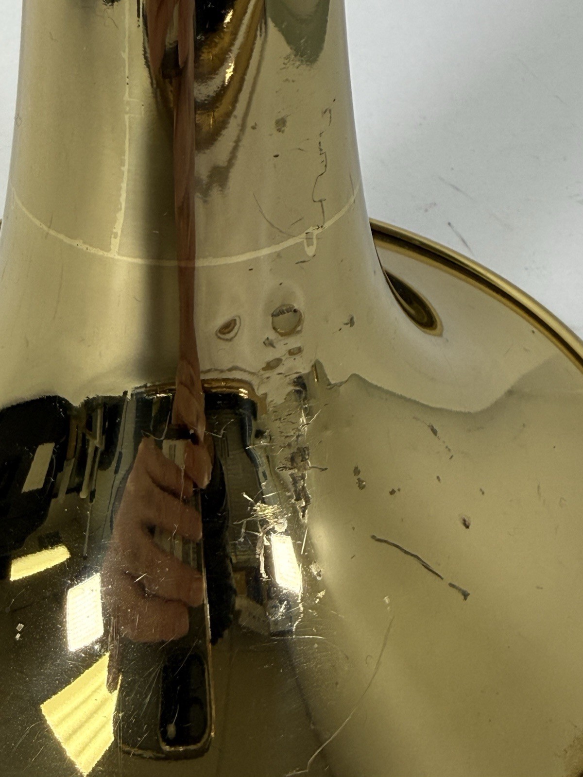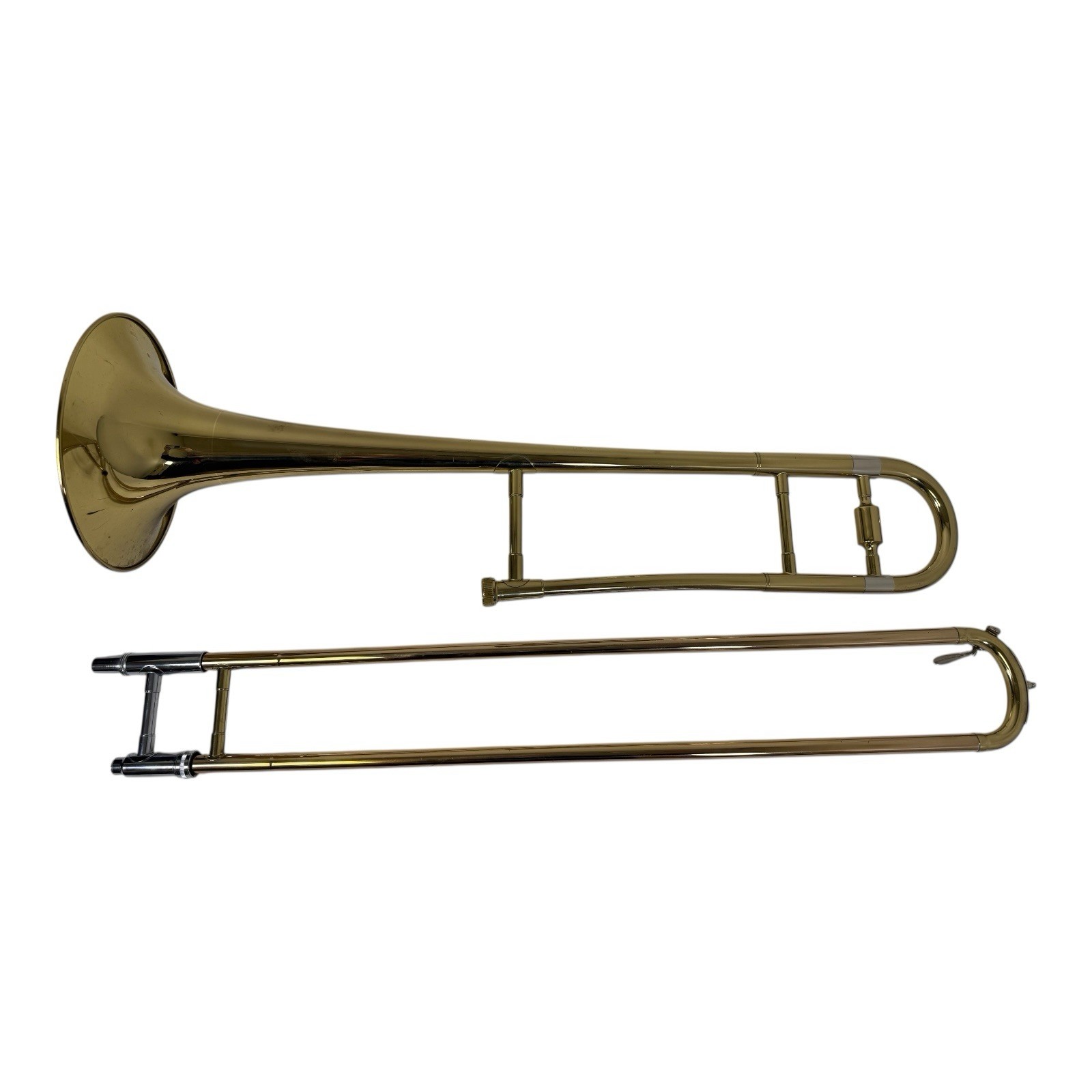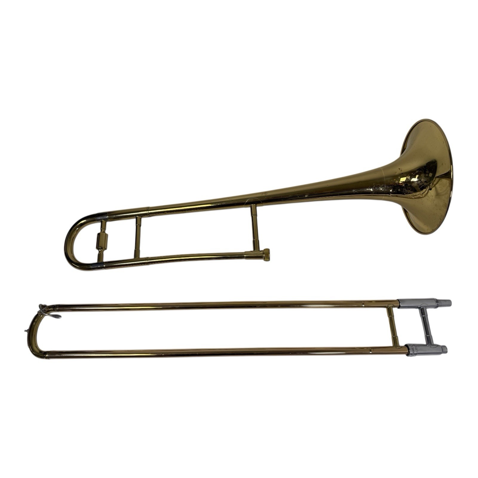 Used in fair condition. The bell does have a few dents, see pics. Listing is for the trombone and case only. No mouthpiece.