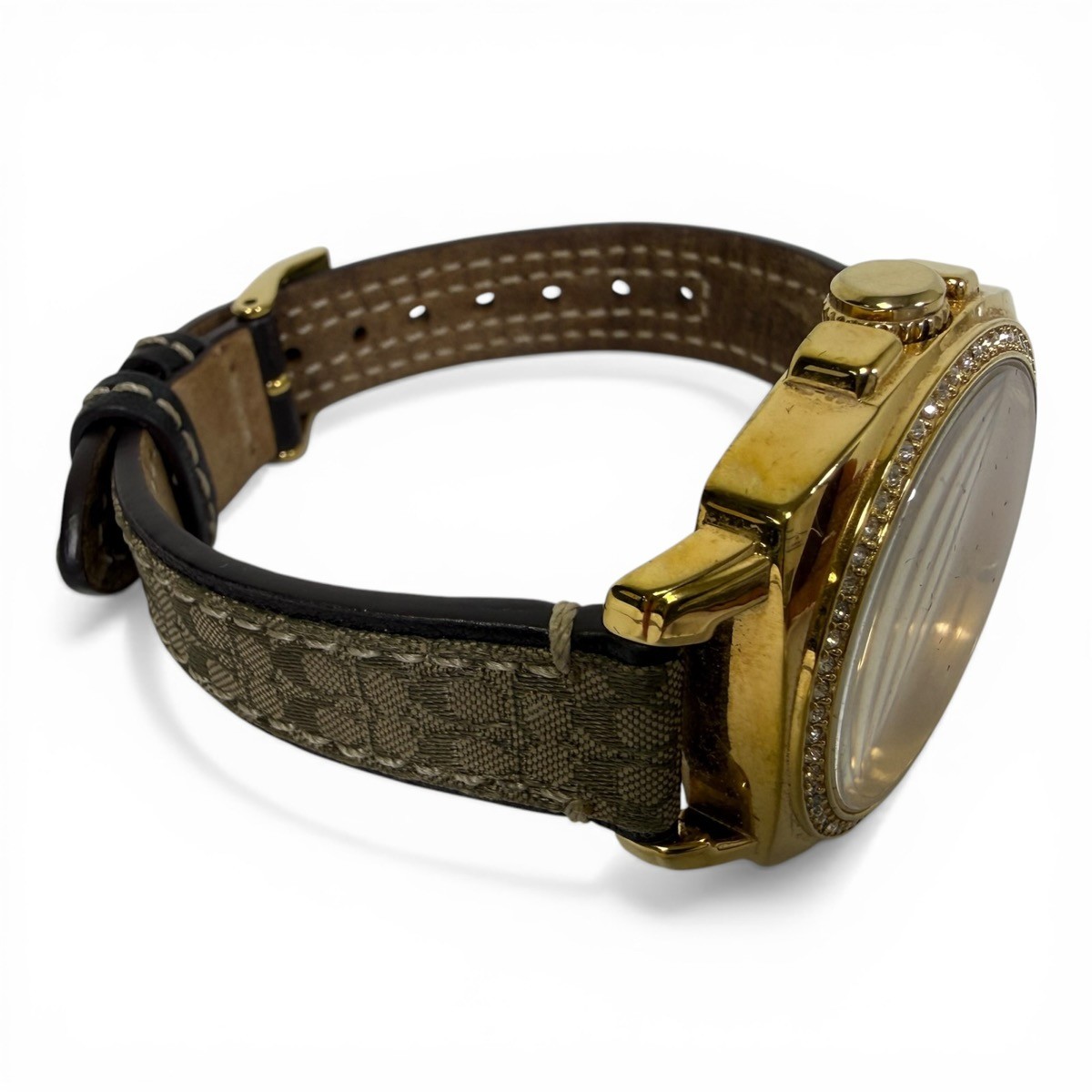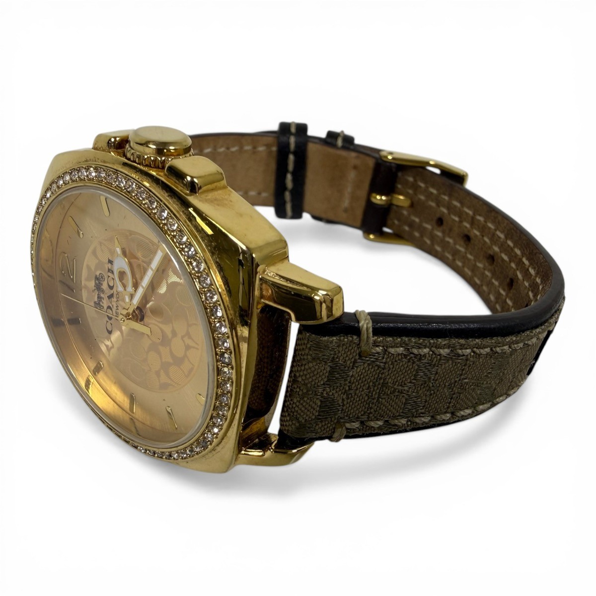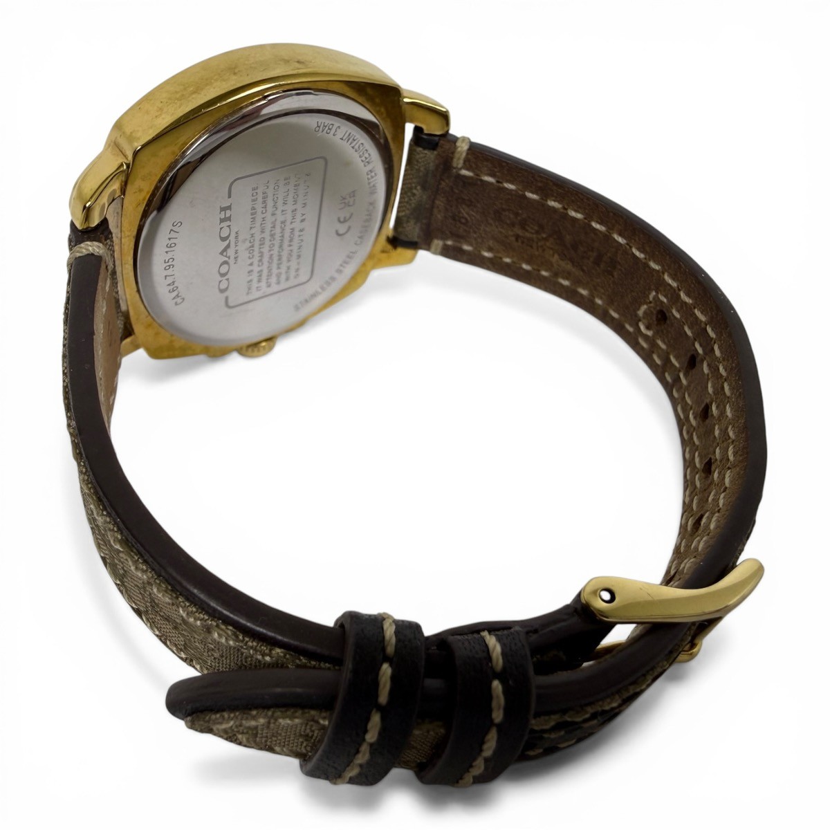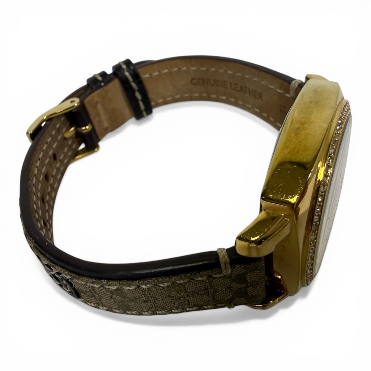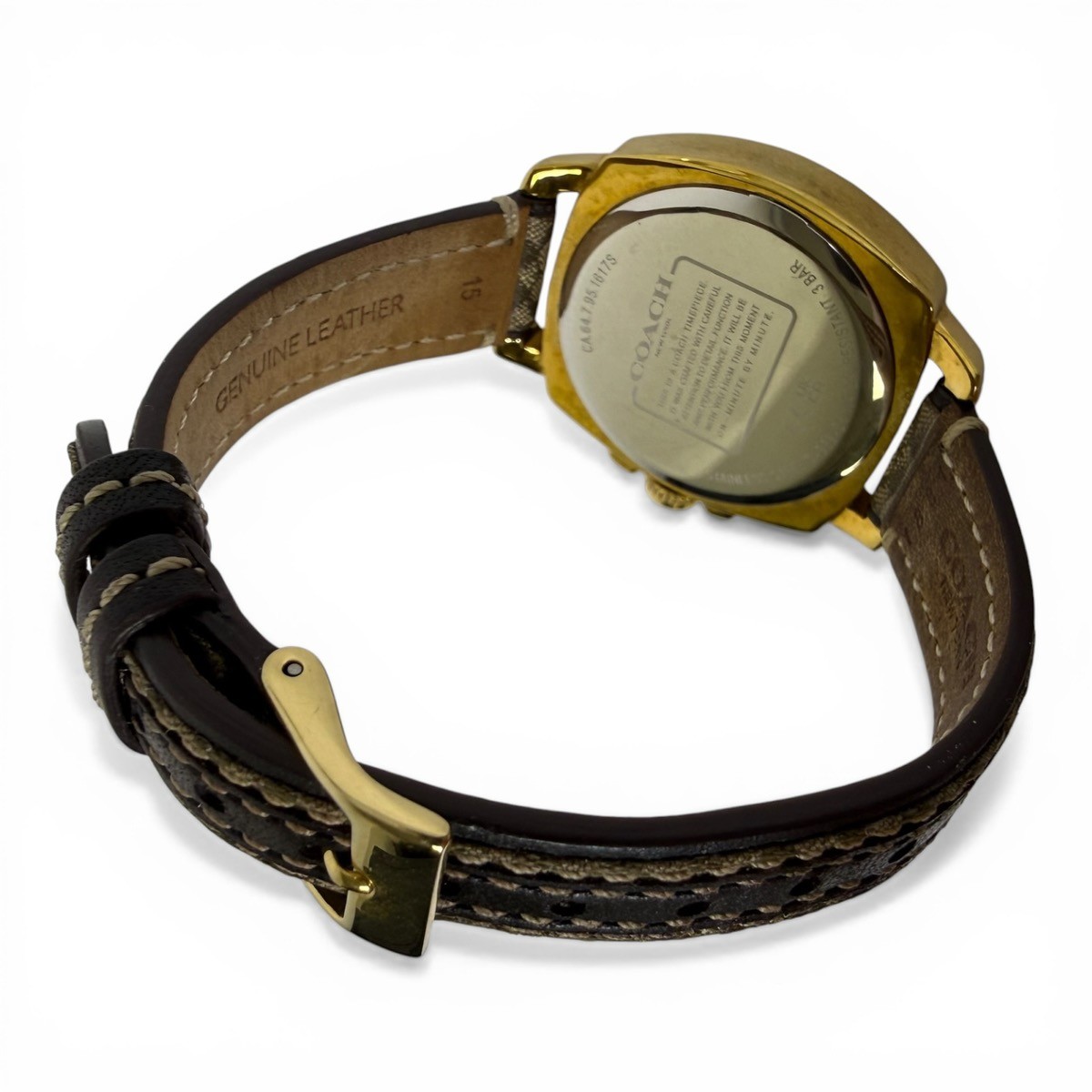 Watch Condition Rating? 90% – EXCELLENT. EVIDENCE OF USE IS VISIBLE TO THE UNAIDED EYE. SCRATCHES ARE LIGHT, BUT MORE NUMEROUS THAN "NEAR MINT". IF THE WATCH HAS BEEN RESTORED, ALL ORIGINAL REPLACEMENT PARTS HAVE BEEN USED. STRAP CLEARLY USED BUT NO STAINS. NO DENTS OR DINGS ARE DETECTABLE, AND THE BRACELET HAS LITTLE WEAR. WORKING PERFECTLY, NEEDS NO REPAIR OR SERVICE. Case Material | Color STAINLESS STEEL Movement Type? Quartz (Battery) Watch Band Material? LEATHER – DEPLOYMENT BUCKLE Watch Feature? WATER RESISTANT UP TO 100M Year of Manufacture Not Specified Box and Papers ? NO BOX OR PAPERS Style ? CASUAL Display? ANALOG Face Color Yellow Gold Watch Shape Oval