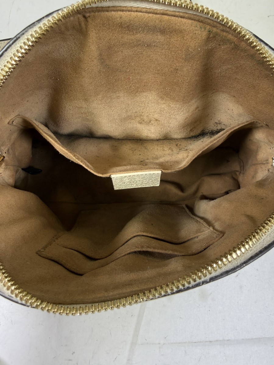 Additional Details for eCommerce ACTUAL PURSE PICTURED. ITS IN NICE CONDITION. INSIDE COULD USE A BETTER CLEANING. ORIGINAL DUST BAG, NOT PICTURED, BUT IS INCLUDED. Condition Rating 85% – Good Condition – Normal wear due to normal use. It may have surface scratches, darkening of handles, loose threads, and other wear. It may have original packaging, dust bag and may have original tags. Material Leather Handbag Type Clutch Dust Bag Yes, includes original dust bag Original Brand Box Yes included, good condition Authenticity Card No, authenticity card not included Original Receipt No, does not include original receipt Color White Dimensions HEIGHT 7.25″ WIDTH 9.25″ DEPTH 3″