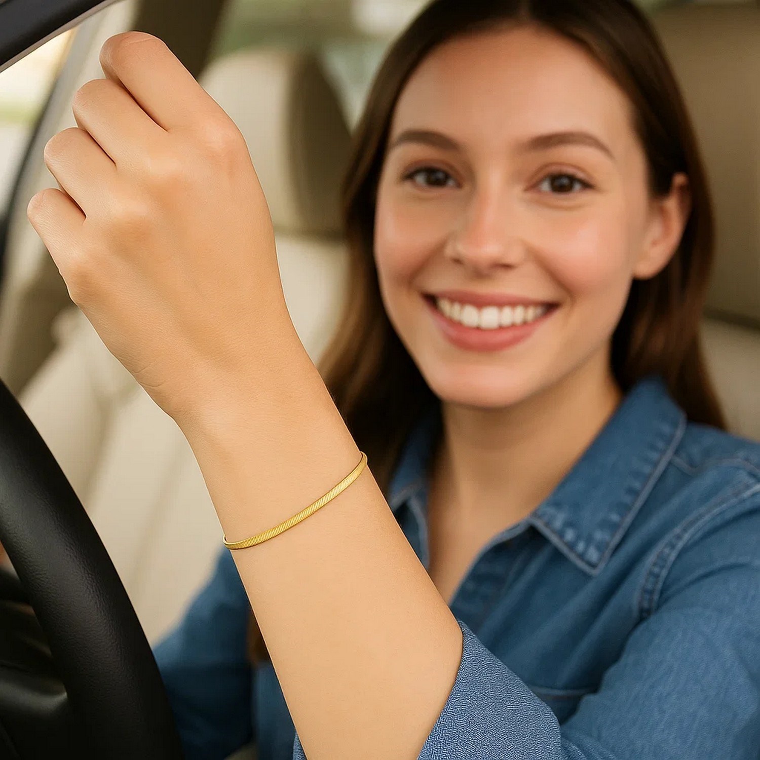 Imperial herringbone bracelet crafted in 10k yellow gold measuring 2.8 millimeters in width. Secured with a lobster clasp.