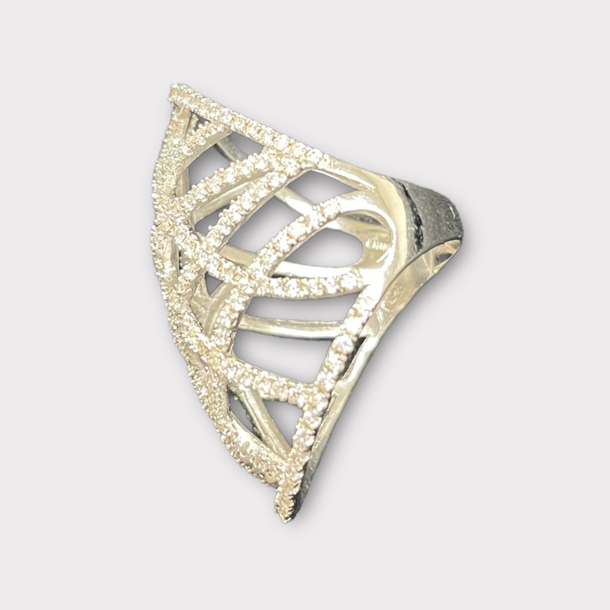 Lady’s Silver Ring CZ Criss Cross 4.9dwt Sz:7.5