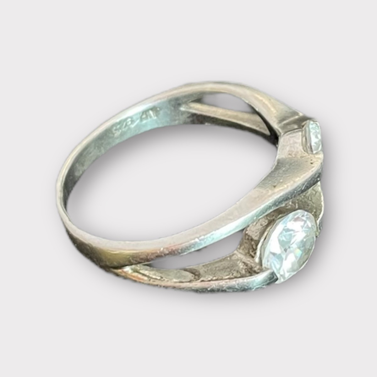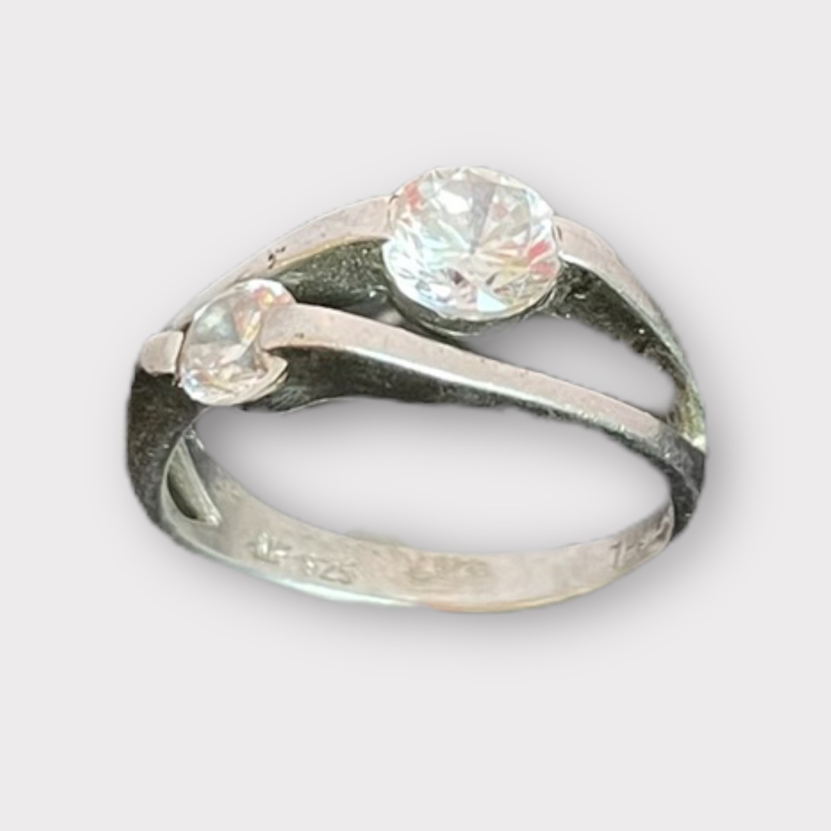 Lady’s Silver Ring with 2 Round Cut CZ 2.4dwt Size:7.5