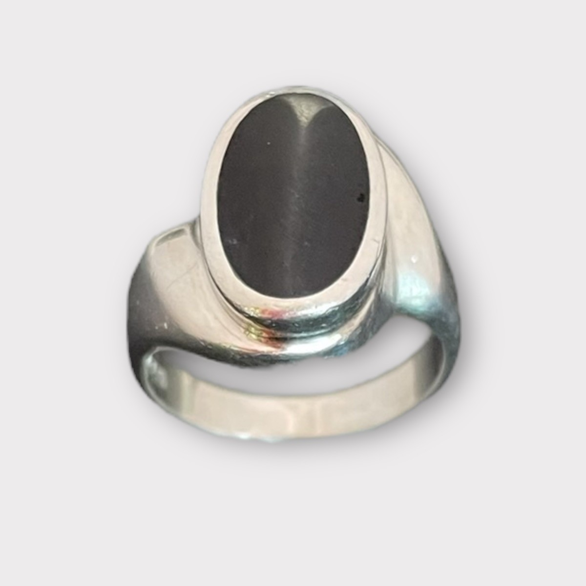 Lady’s Silver Ring with Black Oval Stone 2.8dwt Size:6
