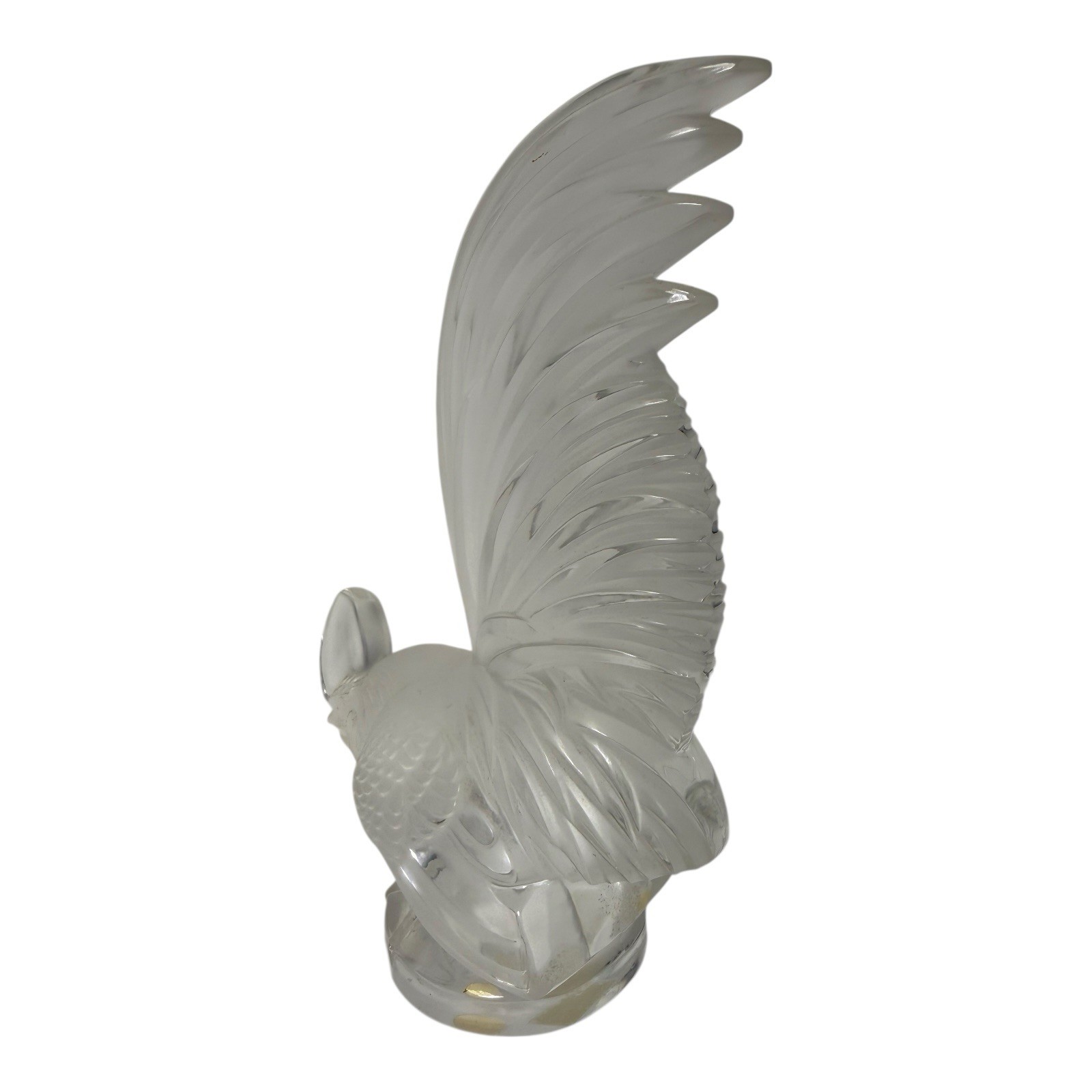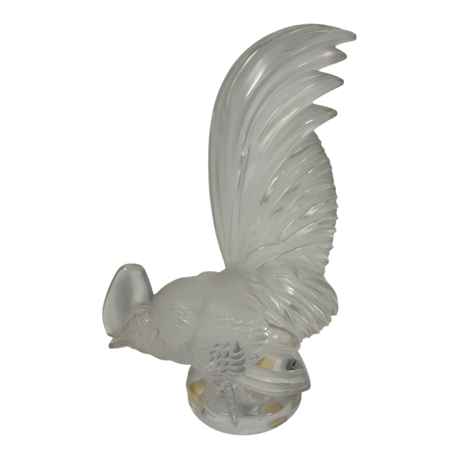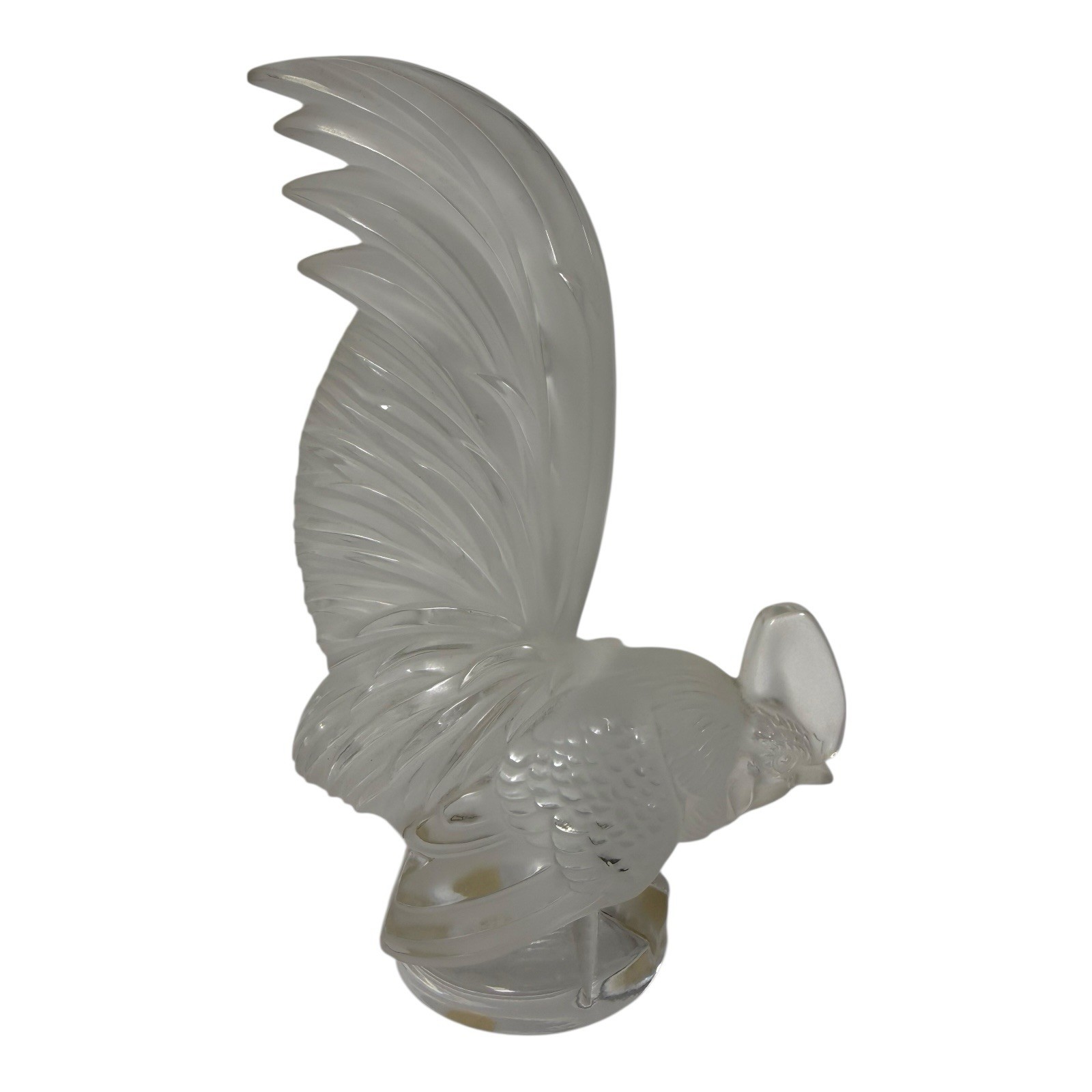 Lalique Crystal “Coq Nain” Car Mascot Large Crystal Rooster 8.25″ tall France