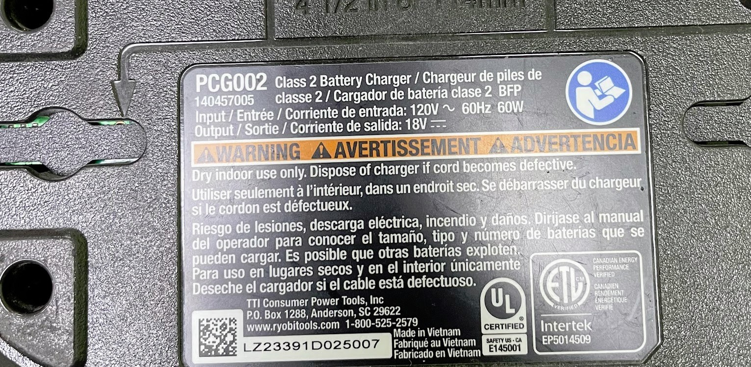 Ryobi ONE+ 18V 4 Ah Battery PBP005 Charger PCG002