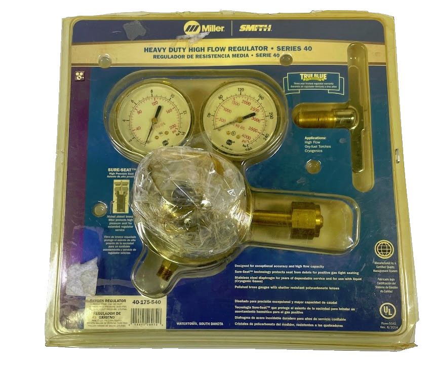 Smith 40-175-540 Gas Regulator, Oxygen, Single Stage, 0.825″-14 Inlet, 9/16″-18 Outlet, 175 psi