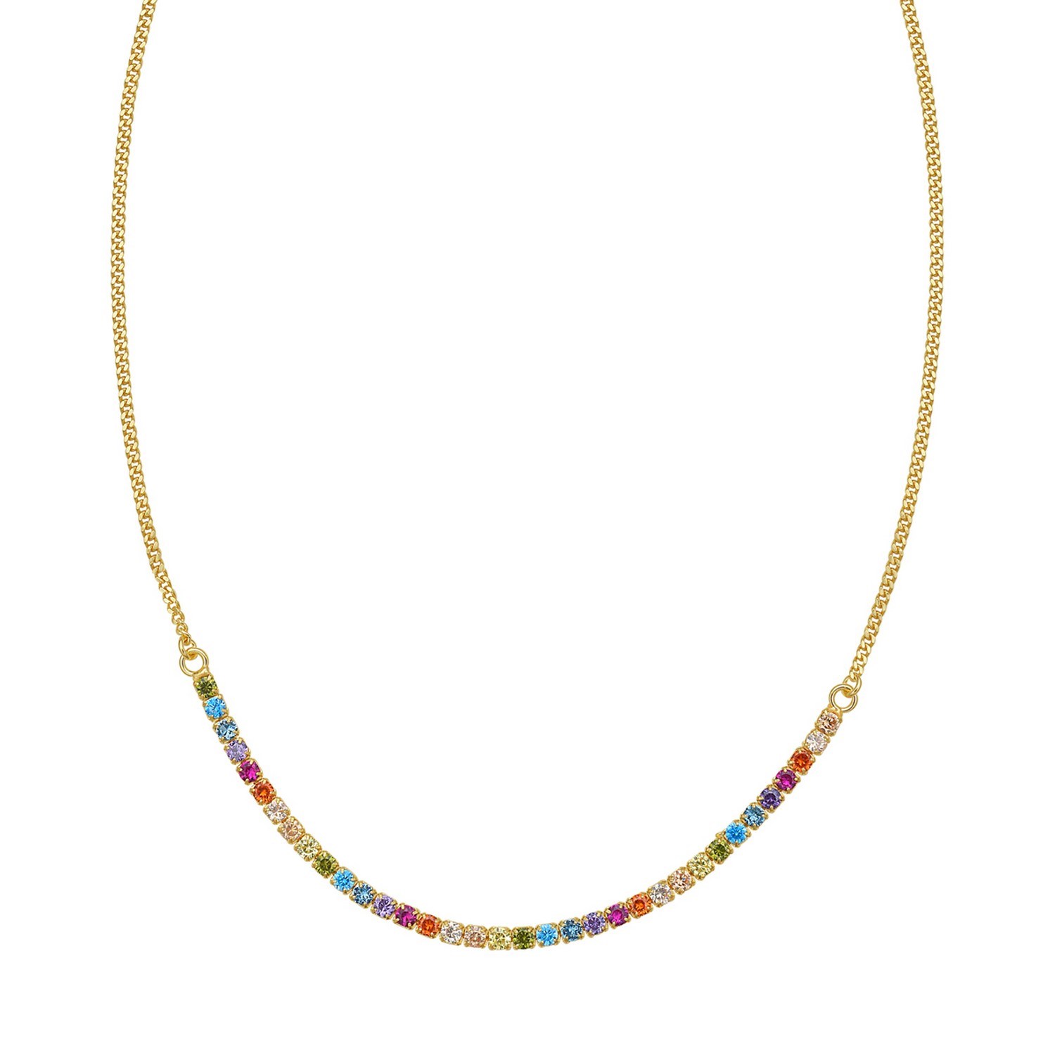 Sterling Silver Gold Plated Rainbow CZ Necklace