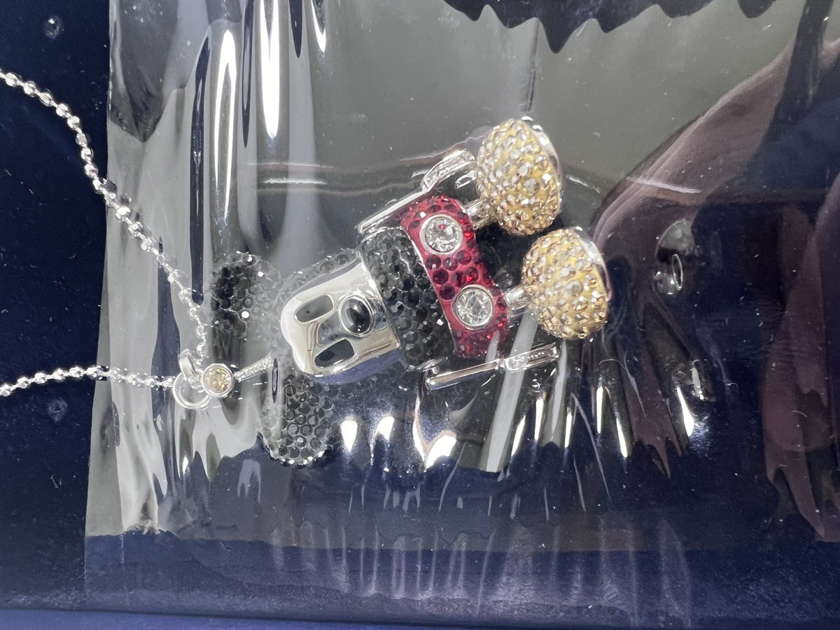 Factory Box Included Yes – Original Box Included – Previously Opened Condition Rating 98% – New – An unused item with absolutely no signs of wear. The item may be missing the original packaging, or in the original packaging but not sealed. Additional Details for eCommerce ACTUAL ITEM PICTURED. INCLUDES ORIGINAL CHAIN, LONG LENGTH. THIS HAS NEVER BEEN REMOVED FROM PACKAGING AND NEVER WORN. Description of Item ? ROBOT MICKEY