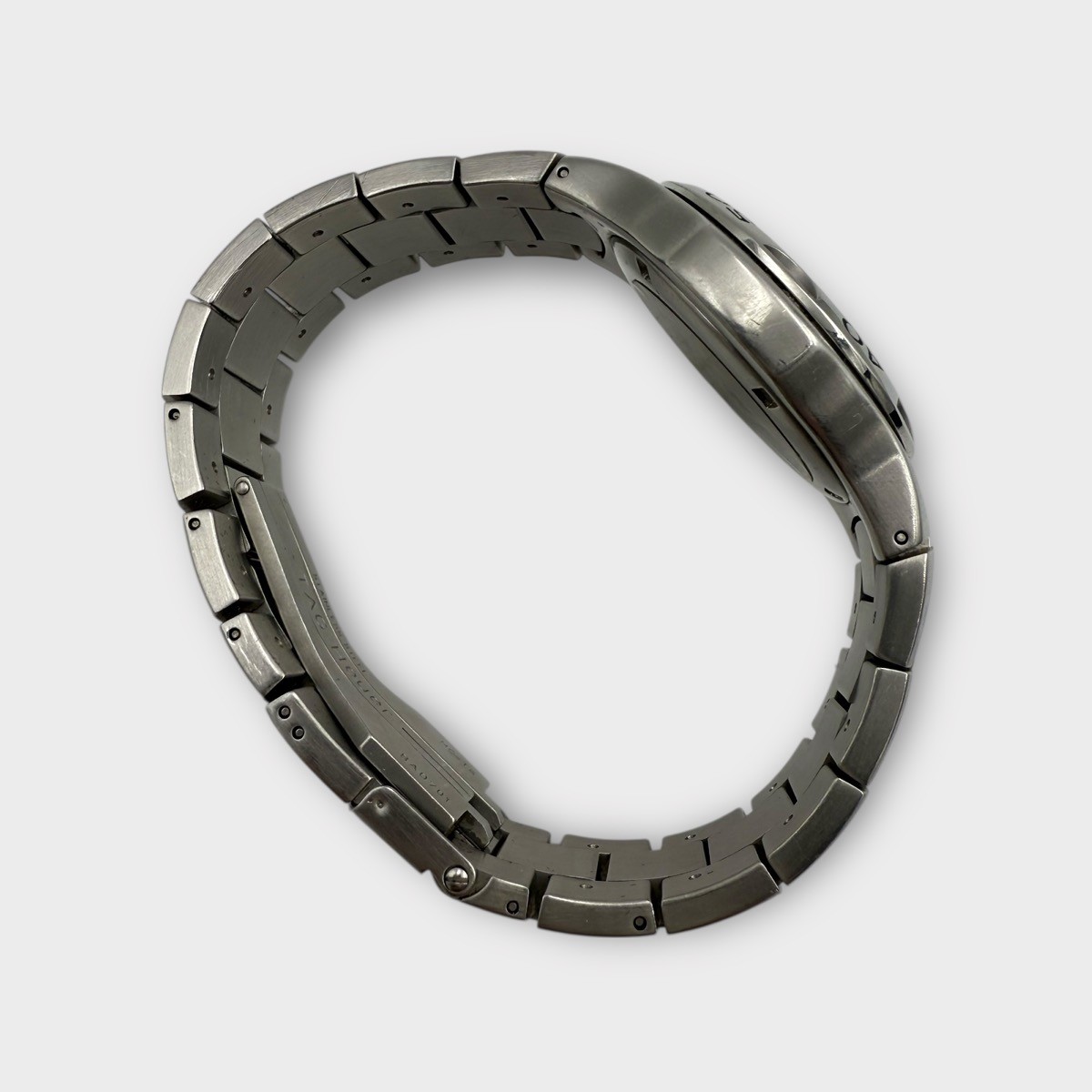 Watch Condition Rating? 86% – VERY GOOD. THE WATCH SHOWS WHAT MIGHT BE CONSIDERED NORMAL WEAR BY A CAREFUL OWNER WHO WORE THE WATCH REGULARLY. SCRATCHES ARE EVIDENT, BUT NO NICKS OR DINGS. MAY HAVE REPLACEMENT PARTS AND/OR A HIGH QUALITY REDIAL. RUNNING AND KEEPING GOOD TIME, THOUGH MAY NEED MINOR REGULATION. A SOUND, ATTRACTIVE PRESENTATION OVERALL. Case Material | Color STAINLESS STEEL Movement Type? Quartz (Battery) Watch Band Material? STAINLESS STEEL Watch Feature? DATE Year of Manufacture 2000 – 2009 Box and Papers ? NO BOX OR PAPERS Style ? CASUAL Display? ANALOG Face Color Black Watch Shape Round